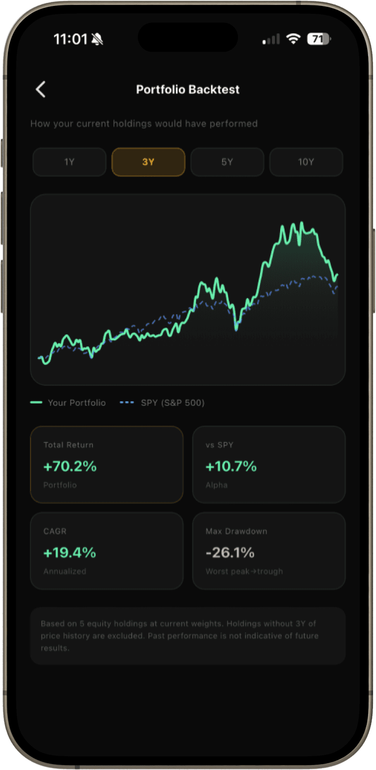 See how your portfolio would have performed (1Y, 3Y, 5Y or 10Y).